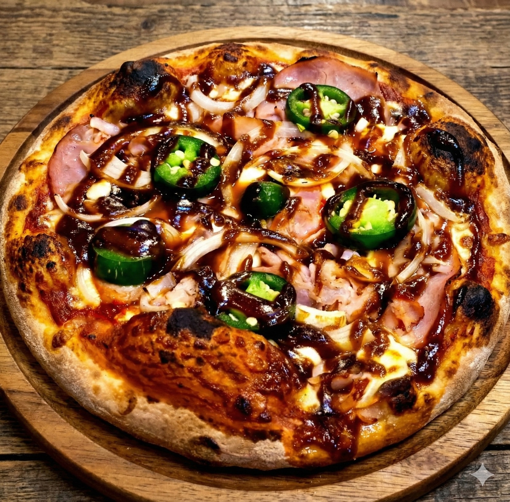 Virginia Pork Ham, Fresh Sliced Jalapenos, Sliced Sweet Onions, and Our Very Owen Tangy BBQ Sauce RM 57.90