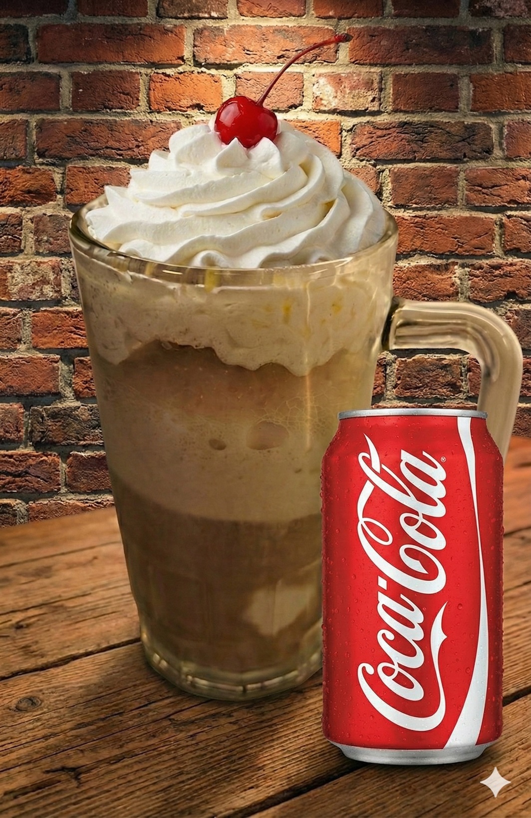 Experience the ultimate classic. Two large scoops of premium, locally made vanilla ice cream submerged in a chilled can of Coca-Cola. Finished with a luxurious topping of authentic Debic professional whipped dairy cream from Belgium.