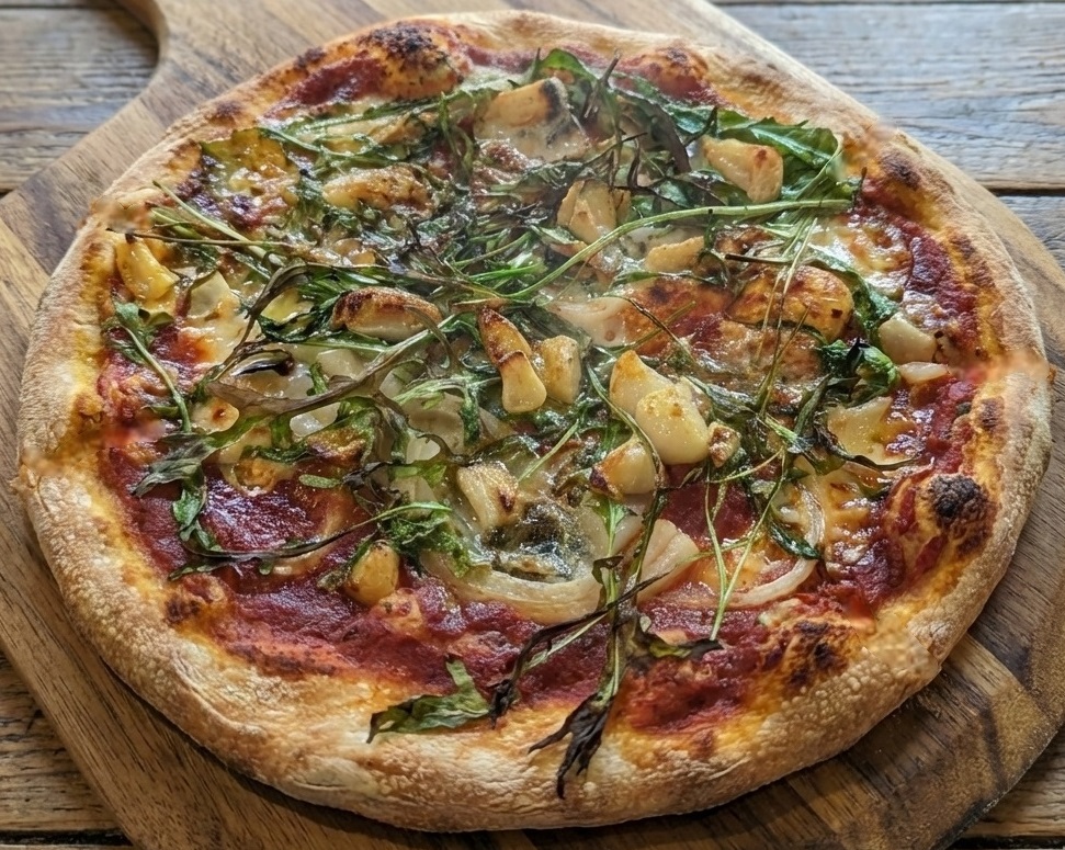 Imported White Truffle Oil, Wood-Fire Roasted Whole Garlic, Creamy Feta, And Freshly Sliced Mushrooms