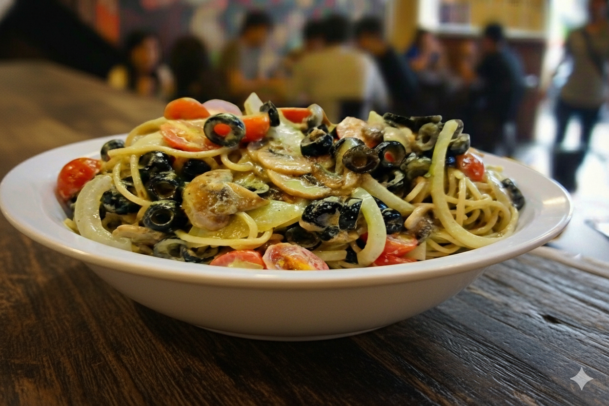 A true delight, not just for vegetarians but for anyone wanting a lighter pasta. Tomatoes, onions, and green capsicums simmered in a tangy, rich homemade tomato pasta sauce, topped with grated Parmesan cheese and a sprinkle of fresh cracked black pepper. RM: 29.90
