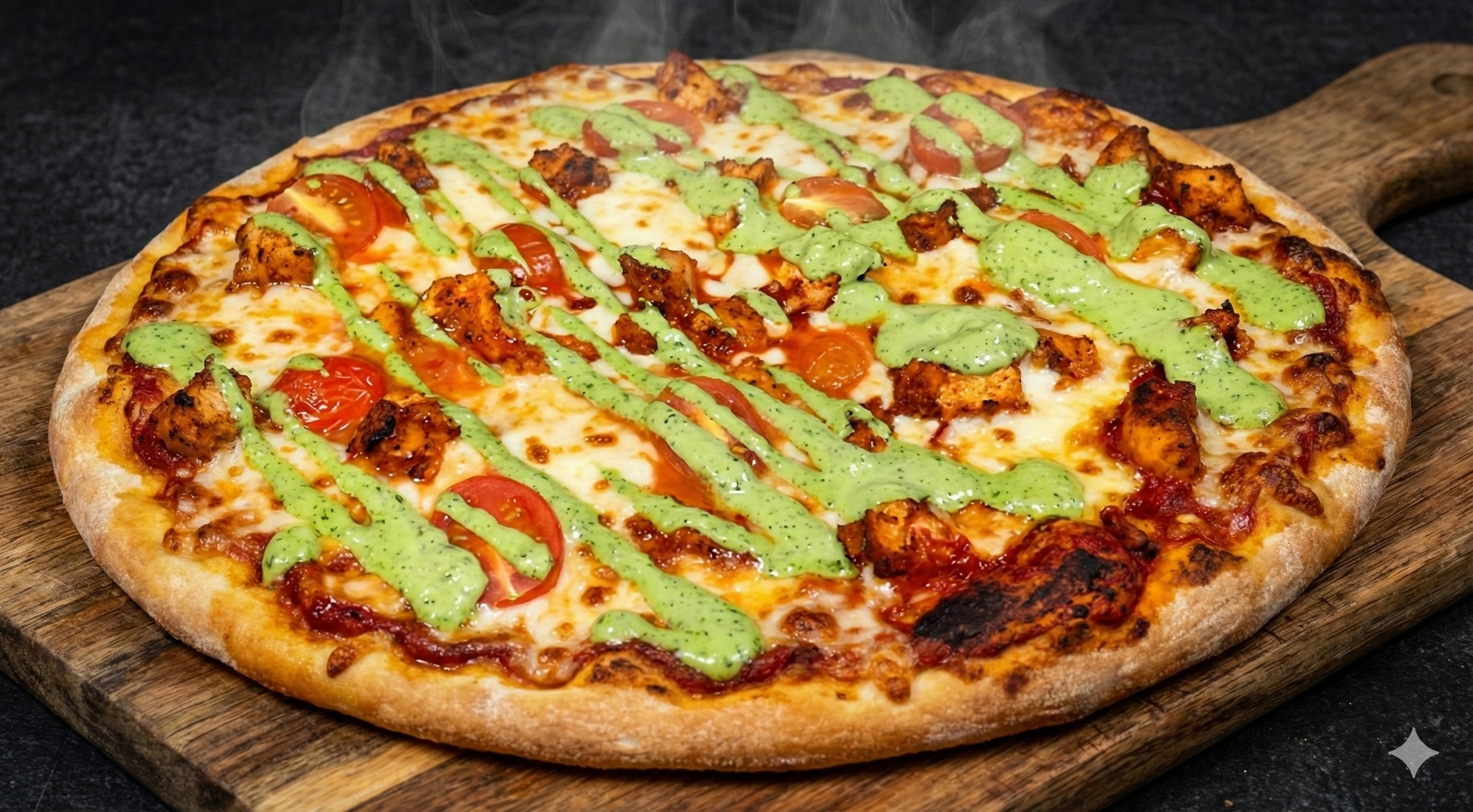 Our Very Own Spicy Miki Miki Chicken and Cherry tomatoes Peruvian Pizza RM 53.90