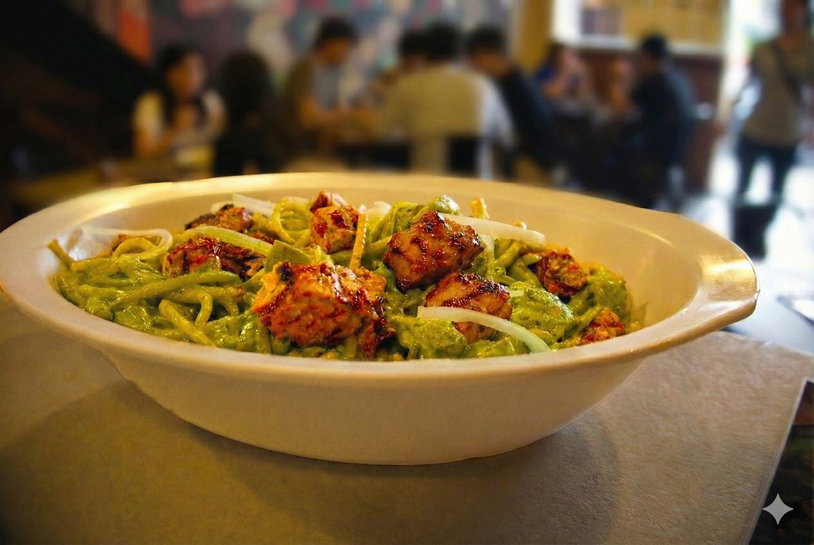 Experience vibrant South American flavors. We serve spaghetti topped with our signature Miki Miki Chicken, fresh cherry tomatoes, and sliced onions. The star of the dish is our homemade creamy Peruvian sauce—a zesty blend of fresh jalapenos, garlic, cilantro, olive oil, and zesty lime juice. It offers a unique, addictive balance of slightly sweet and slightly spicy flavors. RM: 37.90