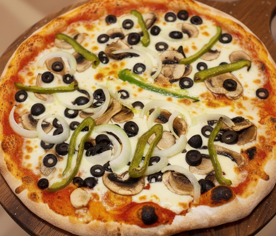 A Vegetarian's Delight with Fresh Green Capsicums, Sliced Sweet Onions, Fresh Mushrooms and Black Olives. RM 43.90